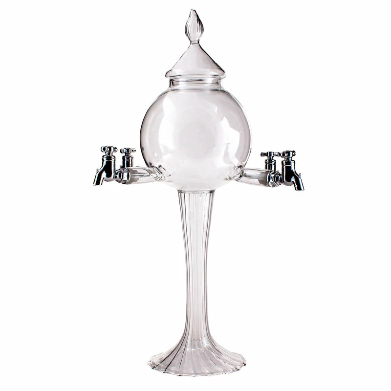 Absinthe Fountains were popular in swanky high end bars due to their high expense in the 1800’s. This is not always so now, as they are becoming more prevalent in the bar and are thus more widely available at an accommodating price. This fountain can be used with 4 glasses at a time with its four spouts. It stands 15.75″ tall and 11″ wide. The mouth-blown glass globe holds approximately 34 ounces of liquid. This absinthe fountain is very easy to use and makes the perfect centerpiece at a table in any bar or restaurant setting.