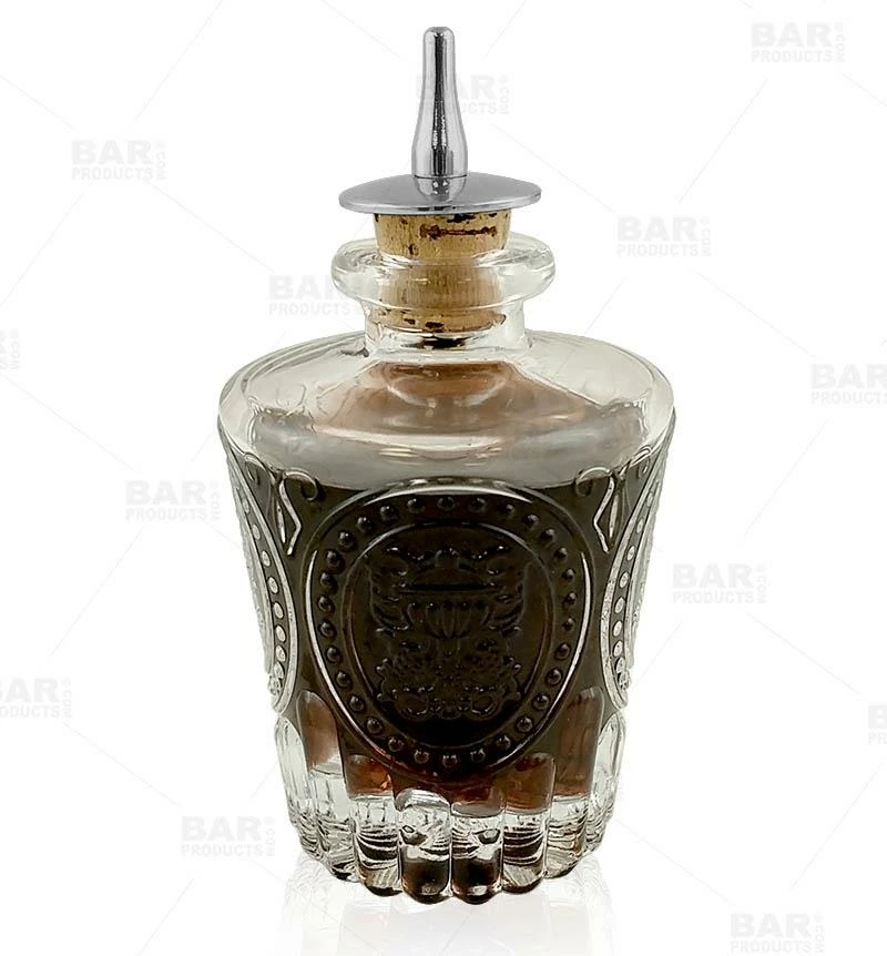 To top off this beautiful glass bottle is a reflective stainless steel dasher cork that is sure to allow the perfect dash amount to all of your signature libations. If you are a professional bartender that incorporates style and presentation to your mixology persona, then this antique glass bitters bottle is perfect for you.