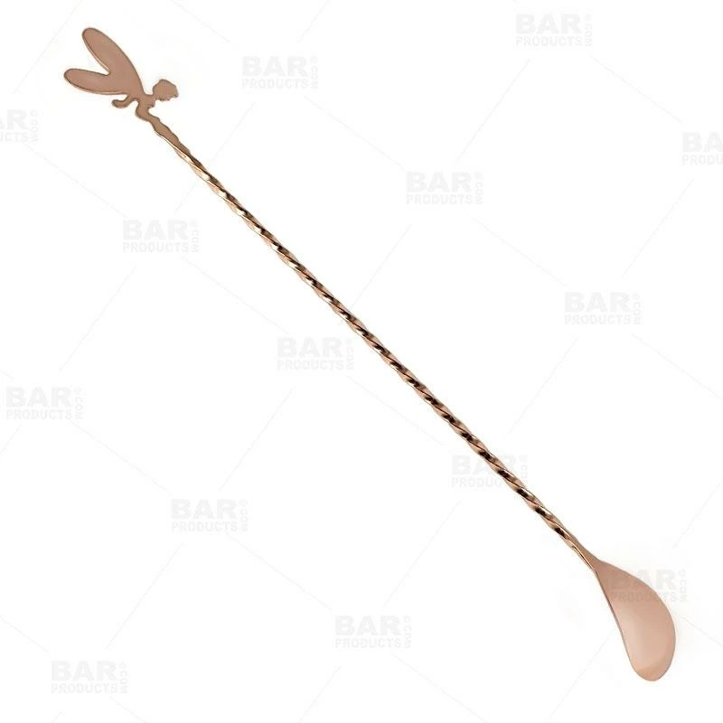 This cocktail fairy bar spoon will certainly add an adorable girly element to your stirring technique! A twist off of the historic absinthe green fairy, this gorgeously reflective bar spoon showcases an exquisite copper plating. The high quality and durable stainless steel construction backed by the BarConic® brand will ensure longevity and enjoyment. This bar spoon is simply a delight to use with its 30cm length stem that twists down to a smooth spoon end.