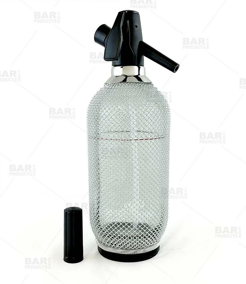 This soda siphon features an ultra durable, thick glass construction and is protected with a braided stainless steel mesh cover. Simply insert a CO2 cartridge (sold separately) and create fresh carbonated water for all of your signature cocktails. NOTE: DO NOT FILL PAST RED LINE.
