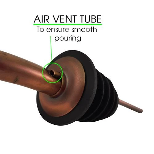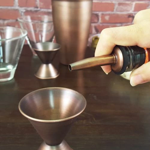 Every bar, restaurant, club and home bar needs to have our BarConic® Antique Finish Liquor Pourers. The added efficiency they create makes them an absolute necessity behind the bar. Bartenders trying to dispense liquor and craft cocktail without liquor pourers can cause frequent inaccuracies, especially during a busy night or a rush. These inaccuracies can lead to unsatisfactory drinks that either have to be remade or it creates a negative perception of your bartending skills. Trying to quickly grab and pour from liquor bottles without pourers also causes frequent spills and messes. Between the inaccurate pours and all of the spilled liquor, gallons of your valuable and expensive liquors are being thrown down the drain. Our liquor pourers create a more controlled flow that will drastically reduce wasted product and lost profit. These unique liquor spouts have been engineered to ensure a steady pour and facilitate accurate portions. The simple yet sleek design of the copper tone gives this essential device a sophisticated and classy appeal. The copper coating creates an old fashioned elegance and vintage charm that instantly enhance any collection of barware tools.