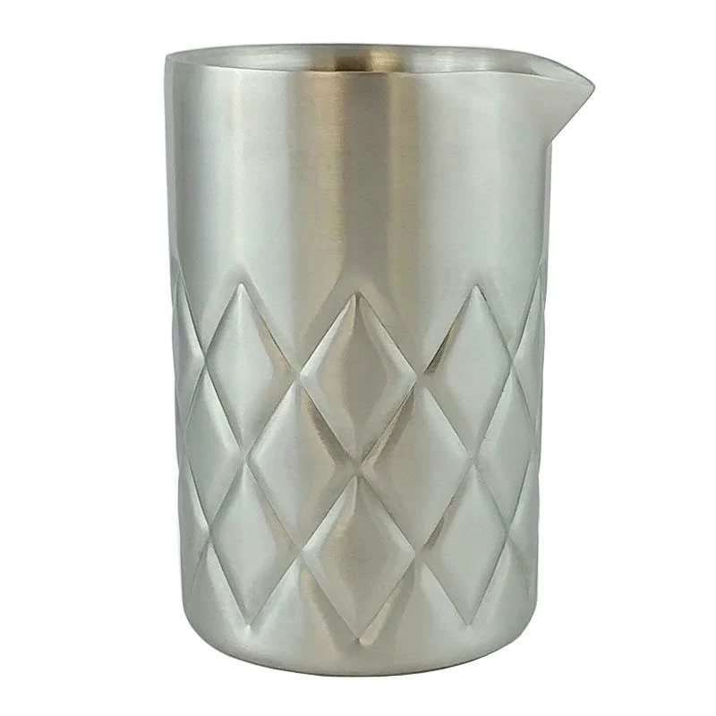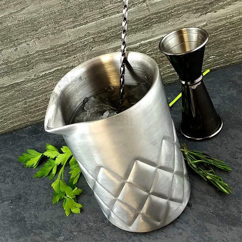 When shopping for the perfect mixing vessel, there are many options. This diamond pattern stainless steel mixing pitcher is certainly one at the top of our list. The double wall design compliments the chilling factor to the highest level. The ice within will ignite with the interior stainless steel walls providing the ultimate chilling environment while the outer stainless steel wall will protect the inner chill from outside heat elements.