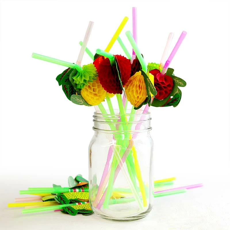 Add a little fruity fun to your cocktail presentations with these disposable “Fruit Themed” drinking straws. Perfect for beach settings, pool parties, tiki or any other summer time refreshments. These adorable accordion style straws will bring a festive vibe to any party or celebration. Each pack includes 50 different colored straws and fruit designs, from pineapple to strawberry and a collection of your favorite citrus’s. The bendy solid colored straws are standard length and diameter making them ideal for the most common types of cocktails.