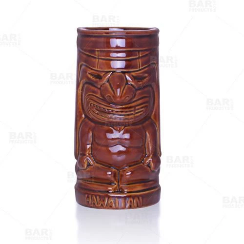 Our cool BarConic® Drinkware Hawaii Tiki Mug is a fun and festive way to show your appreciation for Polynesian culture. The quality craftsmanship of this ceramic tiki mug says it all with its stylish and unique sculpting. The depiction of this authentic looking tiki totem character makes you feel like you’re right in the middle of a luau. This tiki cocktail tumbler is the epitome of Hawaiian tiki culture and is sure to spread that laid back island vibe. Each tiki drinkware piece from the BarConic® line of drinkware was handcrafted by our skilled artisans and showcases an original element to differentiate it from the rest. This particular mug not only offers a tiki totem figurine, but also a “Hawaiian” message molded right into the ceramic design. The brown glossy glaze provides a clean and smooth finish, adding a touch of elegance to a fun tropical drinkware piece. This BarConic® Drinkware Hawaii Tiki Mug will hold up to 12 ounces of your favorite tropical beverage while leaving a lasting impression.