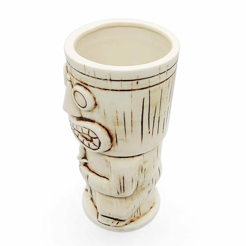 Handcrafted 15 ounce ceramic white stone god tiki mug. Tiki culture says, if the mouth of the tiki is smiling it is to show happiness or open to bring peace. Hand painted and glazed with fine detail. The quality craftsmanship of this ceramic tiki mug says it all with its stylish lines and form. Measures 6 1/8″ H x 2 3/4″ W x 2 1/8″ Rim.