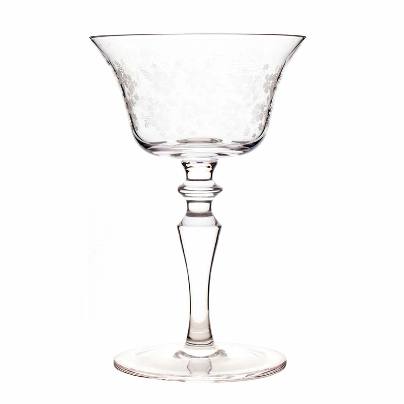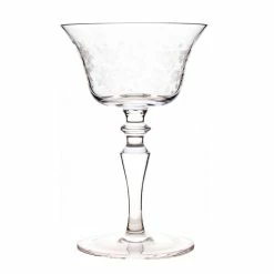 This beautiful and eloquent piece of glassware is perfect for serving some classic mixed drinks to your guest and patrons. It measures 5.5″ in height and has a rim diameter of 3.5″. This glass features a classic vintage style and has an etched pattern of hibiscus around the glass. It is made of durable crystal clear glass and features a round solid base. Has a liquid capacity of 4.5 ounces.