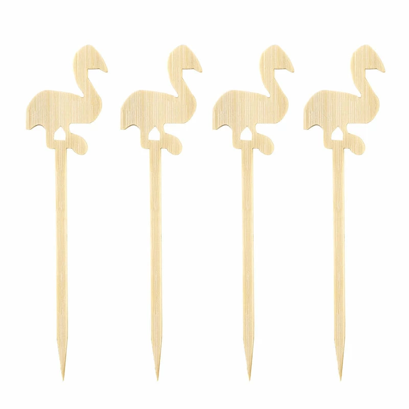 These wooden bamboo flamingo cocktail picks are perfect to garnish your drink with. They are made to be lightweight, sturdy, and feature a perfectly crafted flamingo on top of every pick. They are sure to be the talk of the party when garnished in a tiki glass serving up your favorite tropical drinks.