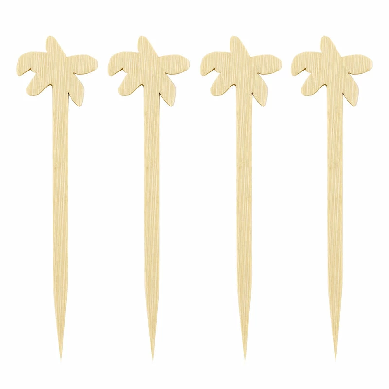 Garnish your tropical drink with these wooden palm tree cocktail picks. These are perfect for skewering various types of fruits or berries to give your drink an extra taste of fruity goodness with every sip. Each pick is made of sturdy bamboo wood and has a palm tree carved on top of the pick.