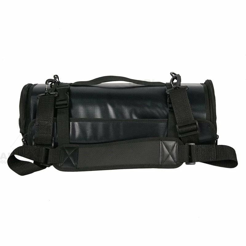 Perfect for the mobile bartender. This Bar Tool Roll is a great way to transport every type of professional bartending tool you need on the go. It is designed to hold 18 common bar tools, and is available with or without the tools. It is a high quality black vinyl material with several Velcro and elastic inserts designed to hold your tools securely in place while traveling. When open, it lays flat displaying your array of tools and then easily rolls up and snaps shut when not in use. The adjustable straps make this bar tool roll ideal for any gender and size to simply sling over their shoulder.