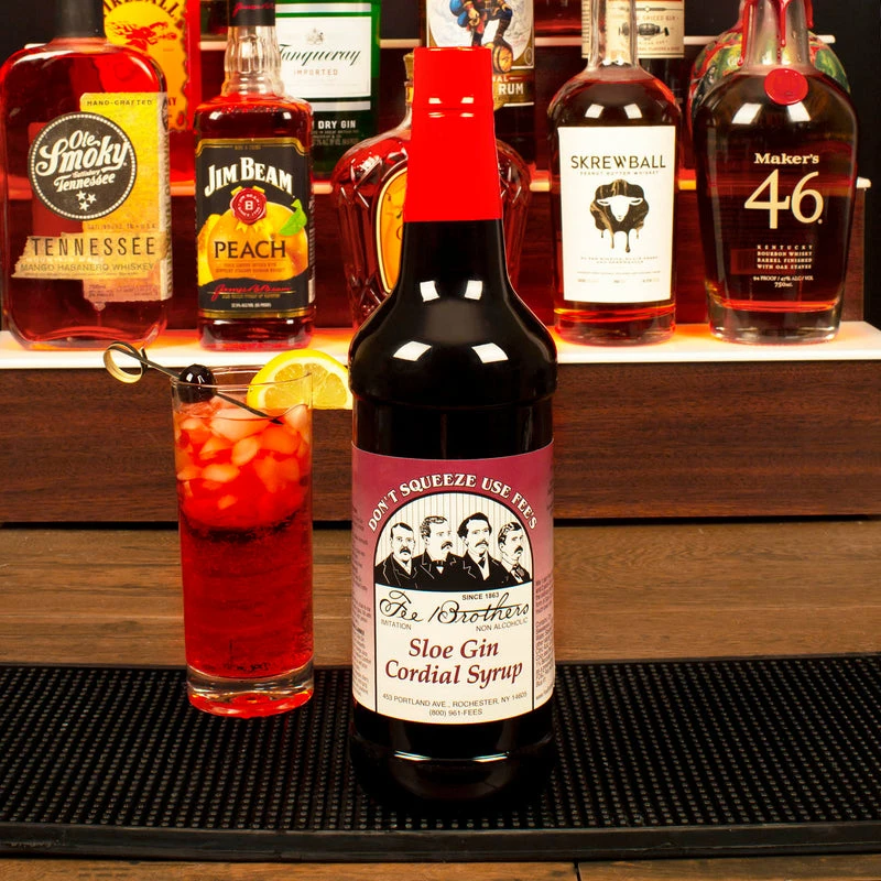 Fee Brothers Sloe Gin cordial syrup allows you to make a variety of drinks that will impress your guest. This syrup has a beautiful rich red color and pairs best with a cocktail like Blackthorn, Sloe Gin Fizz, or an Alabama Slammer. This can also use this product as toppings on desserts or as a flavoring for coffee. This product comes in a 32 ounce bottle and is made in Rochester NY.