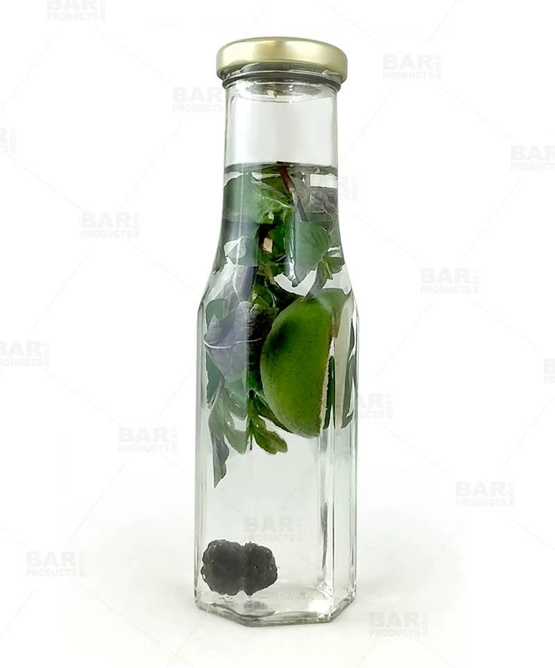 One of the biggest challenges in craft bartending is setting up your station so you can be most efficient throughout your entire service. All craft bartenders can relate to the many fresh ingredients that build their cocktail menu and signature recipes. Having a collection of craft bartending jars such as this tall hexagon shaped style can definitely add a lot of benefits to your work station and the quality of your craft. Holding 8.5 ounces / 250 ml, this craft jar showcases a thick, high quality hexagon mold design along with a gold screw on lid, ensuring longevity and freshness.