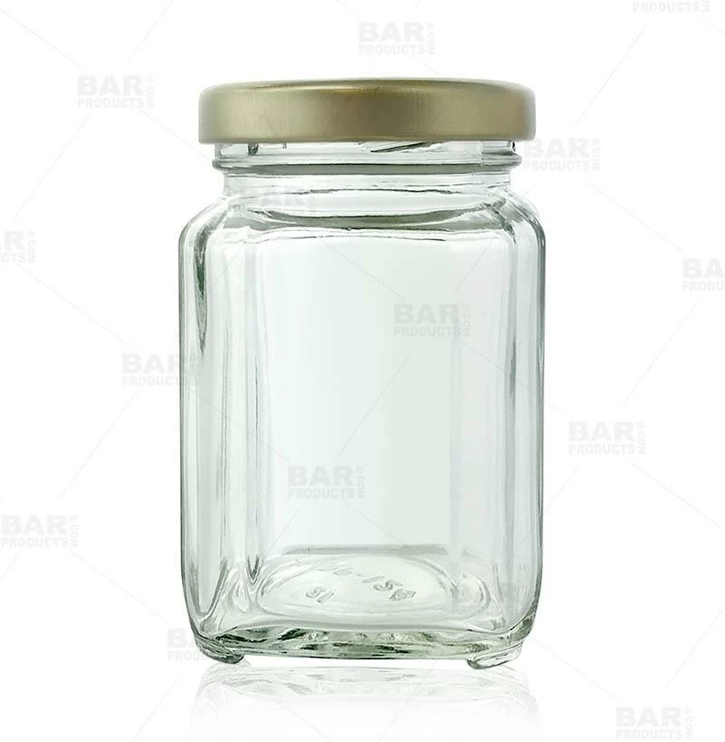 One of the biggest challenges in craft bartending is setting up your station so you can be most efficient throughout your entire service. All craft bartenders can relate to the many fresh ingredients that build their cocktail menu and signature recipes. Having a collection of craft bartending jars such as this Victorian square style can definitely add a lot of benefits to your work station and the quality of your craft. Holding 3.75oz / 110ml, this craft jar showcases a thick, high quality sleek mold design along with a gold screw on lid, ensuring longevity and freshness.