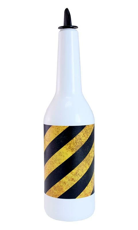 This hazardous design is imprinted on our “Original FlairCo™” Flair Bottle. The FlairCo™ Bottle has been designed to thoroughly mimic the weight and feel of an actual bottle… therefore making your practice time more accurate. The high endurance, one piece plastic injection mold allows for years of practice and growth of your flair skills. They are built to last through the wear and tear of missed catches, and are the perfect flair bottles for an aspiring flair bartender!