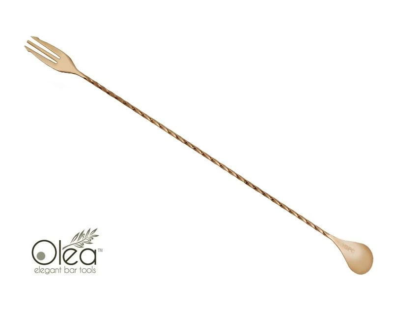 “Absolutely stunning” are the perfect words to describe this gorgeous Copper Plated “Trident” Fork Tip Bar Spoon. One of the first editions to our line of Olea™ Elegant Bar Tools, this bar spoon is every master mixologists and professional bartenders dream bar tool. This high quality piece is constructed from a durable stainless steel material and then beautifully plated with a reflective Copper finish.