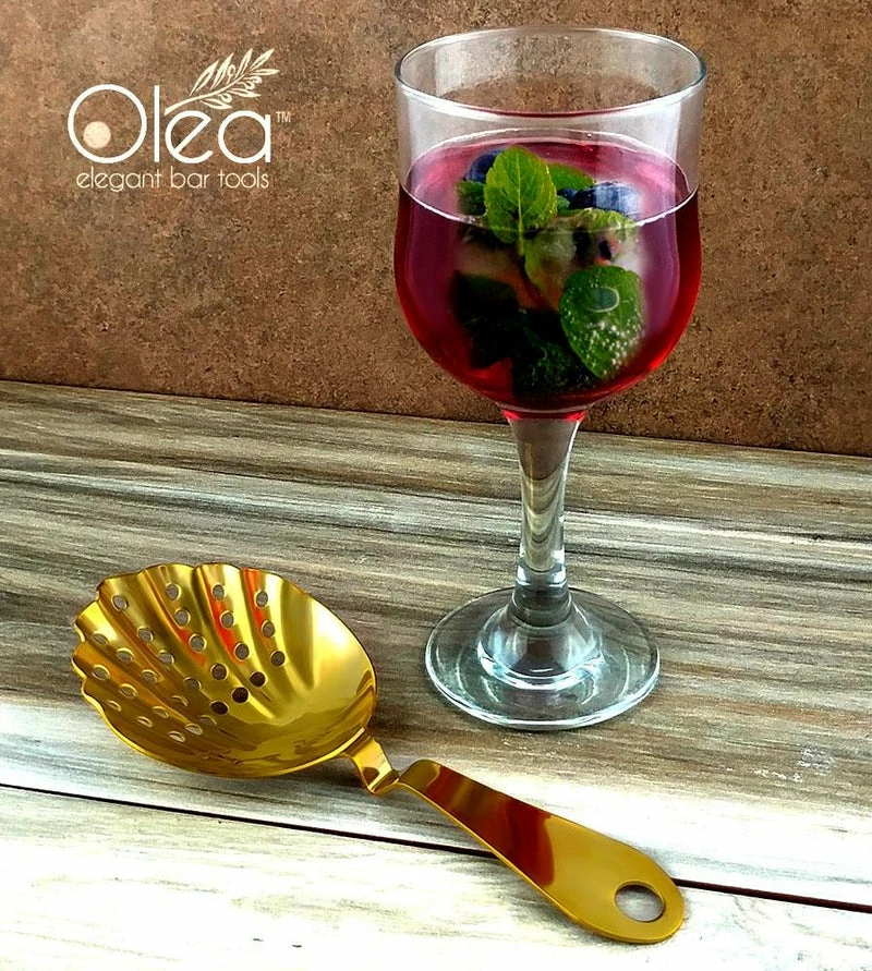 “Absolutely stunning” are the perfect words to describe this gorgeous Gold Plated Shell Julep Strainer. One of the first editions to our line of Olea™ Elegant Bar Tools, this cocktail strainer is every master mixologists and professional bartenders dream bar tool. This high quality piece is constructed from a durable stainless steel material and then beautifully plated with a reflective Gold finish.