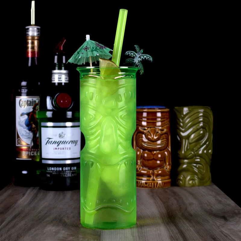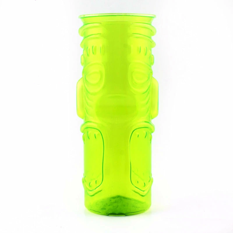 This fun tiki cup is the perfect cup to make your colorfully tropical drinks in. These cups are made of high quality durable plastic material that wont easily break and they feature an embossed tiki face design showcasing a slightly transparent green color. This cup is 8 1/2 inches in height with a 3.25 inch diameter and can hold 32oz of liquid.ย The tiki mixology trend is showing no signs of slowing down and we feel it is here to stay. Stock up on these great reusable tiki cups and enjoy one of the best movements in modern mixology.ย