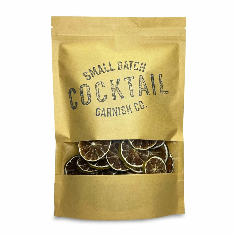 Lime Garnishes are great for rum cocktails, vodka cocktails, and many of the classic cocktail recipes. Each bag comes with over 50 dehydrated lime slices to garnish your cocktails. They are dehydrated all natural for more than half a day. Lime sizes differ as we use nearly the whole lime, but will not include pieces too small to be of use to your cocktails. We field the largest limes we can find at the time to give each bag a healthy mix of smaller and larger slices.