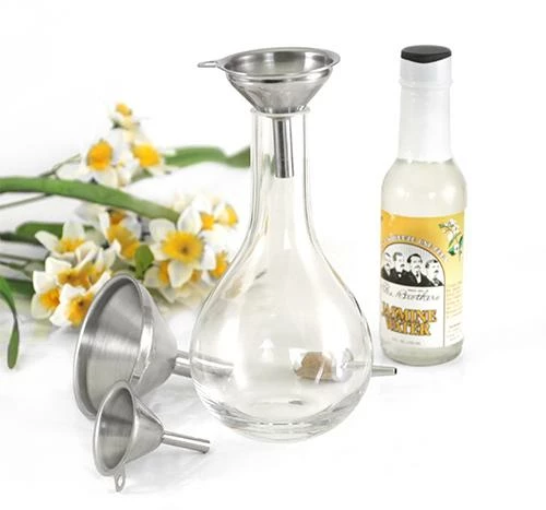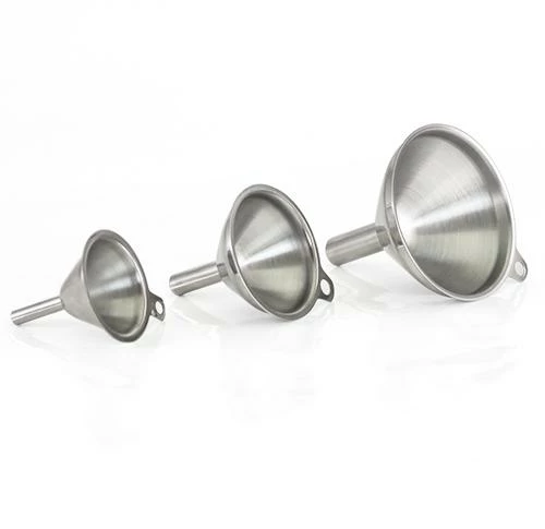 Don’t lose a single drop of liquid with these Stainless Steel Mini Funnels. Use them to put oils, bitters, and household products into smaller, more convenient containers, or refill condiment shakers and drinking flasks. The set includes 3 funnels attached to a metal ring and are stackable for convenient storage.