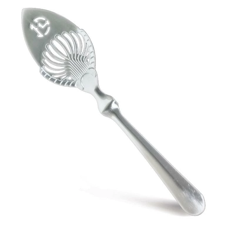This spoon was originally designed for Toulouse Lautrec, who has been noted as the inventor of the “Earthquake” or “Tremblement de Terre” cocktail (a very potent drink containing 3 parts Absinthe and 3 parts Cognac). It features the insignia of Lautrec’s famous initials at the top of the grill, and with its great line definition makes it a very popular choice among absinthe collectors.