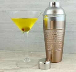 Hot Sale 👍 Bars Cocktail Shaker – 3 Piece 🔨 Hammered Copper / Stainless Steel – 28 Ounce ⭐